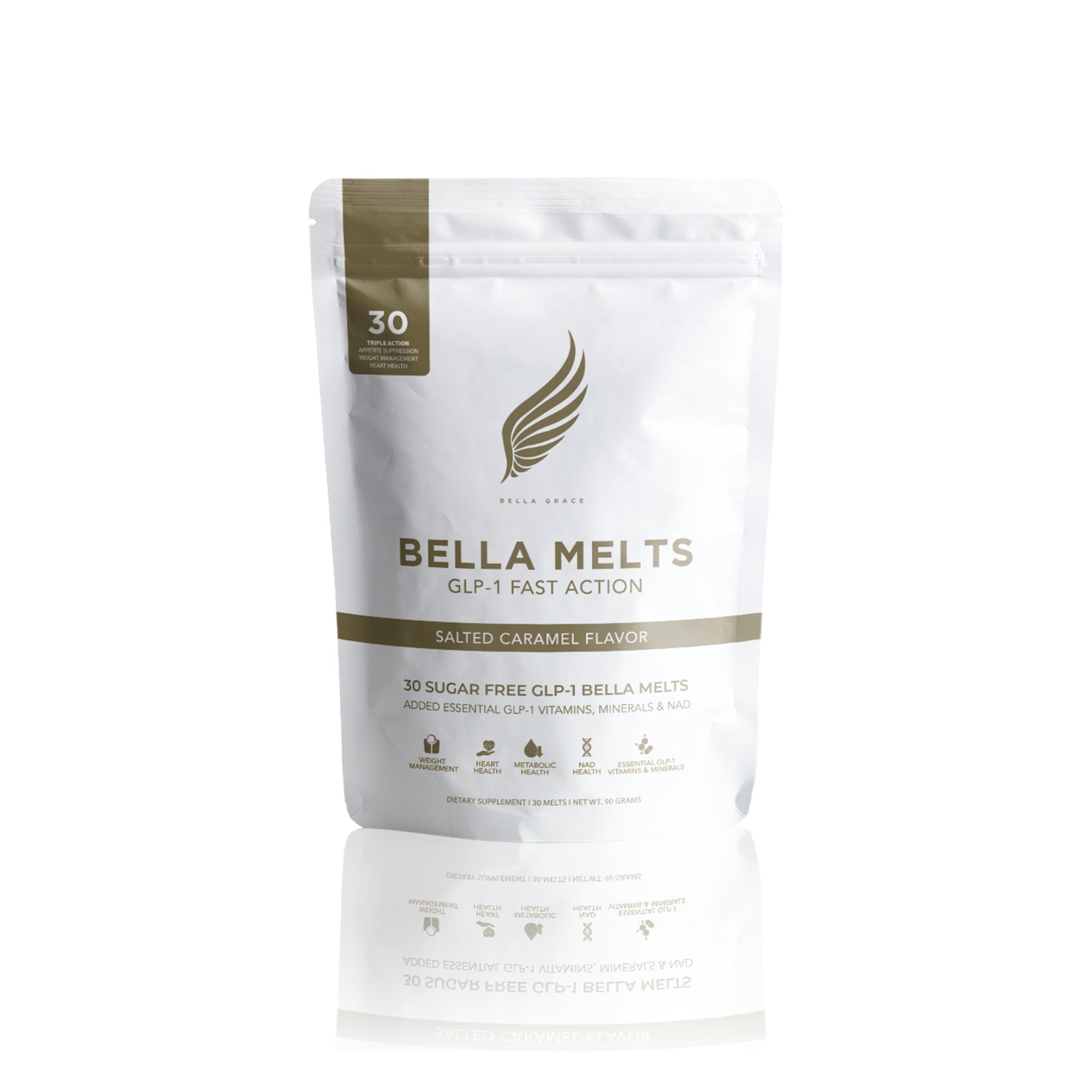 Bella Melts es un delicioso caramelo elaborado con potentes ingredientes botánicos y nutrientes esenciales. Cada caramelo sin azúcar actúa de forma natural en su organismo para activar el GLP-1, lo que le ayuda a sentirse saciado más rápidamente, a mantenerse satisfecho, a calmar los antojos y a quemar más calorías.